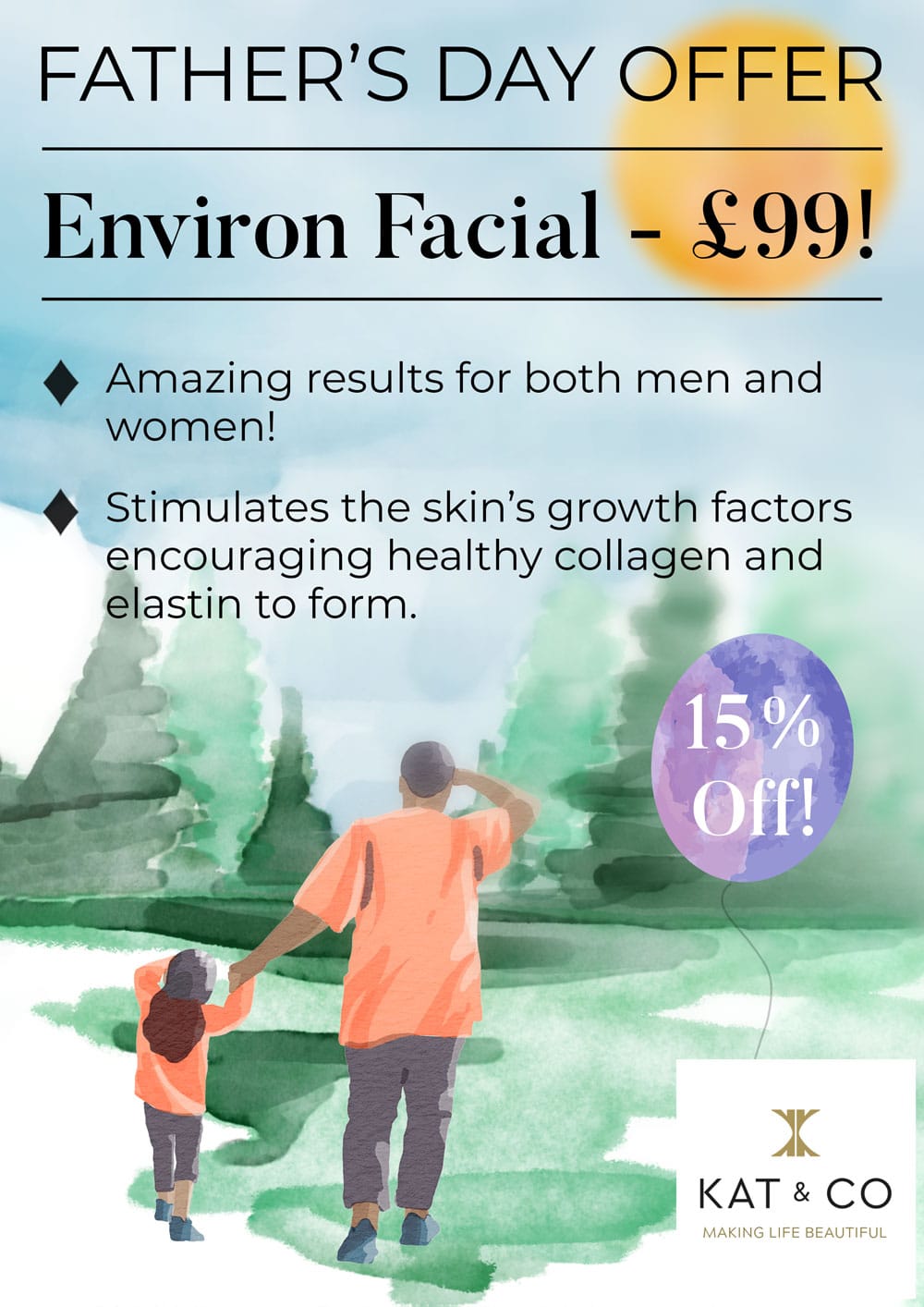 Celebrate Father's Day this June with our incredible Environ Facial for only £99! Suitable for both men and women, an environ facial helps to reduce signs of ageing, lighten pigmentation, and improve skin tone and texture.