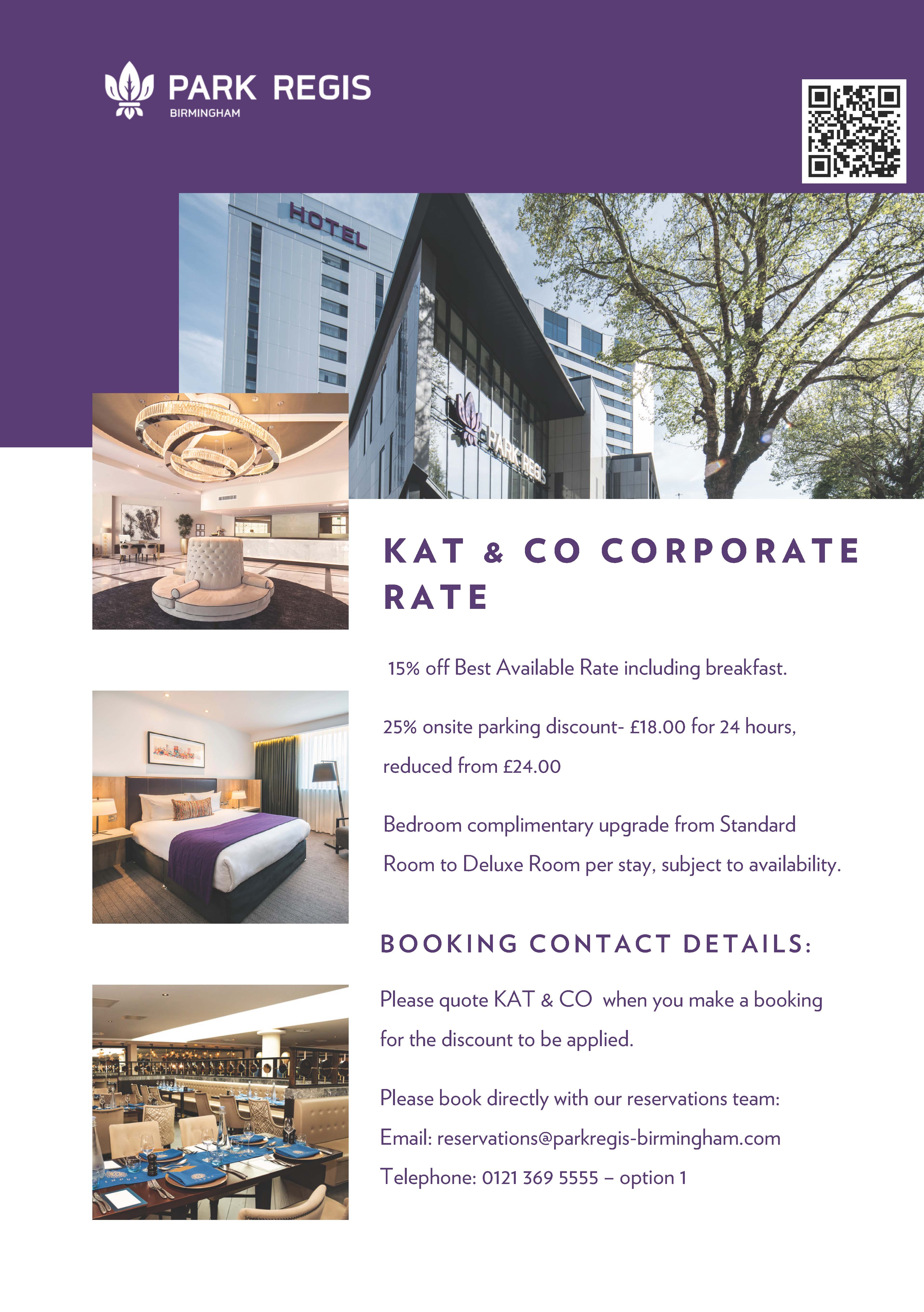 To take advantage of this exclusive discount, simply let Park Regis know you are a patient of Kat & Co when booking your stay at Park Regis Birmingham. Our dedicated team will ensure that you receive the discounted rate and parking discount for the duration of your stay.