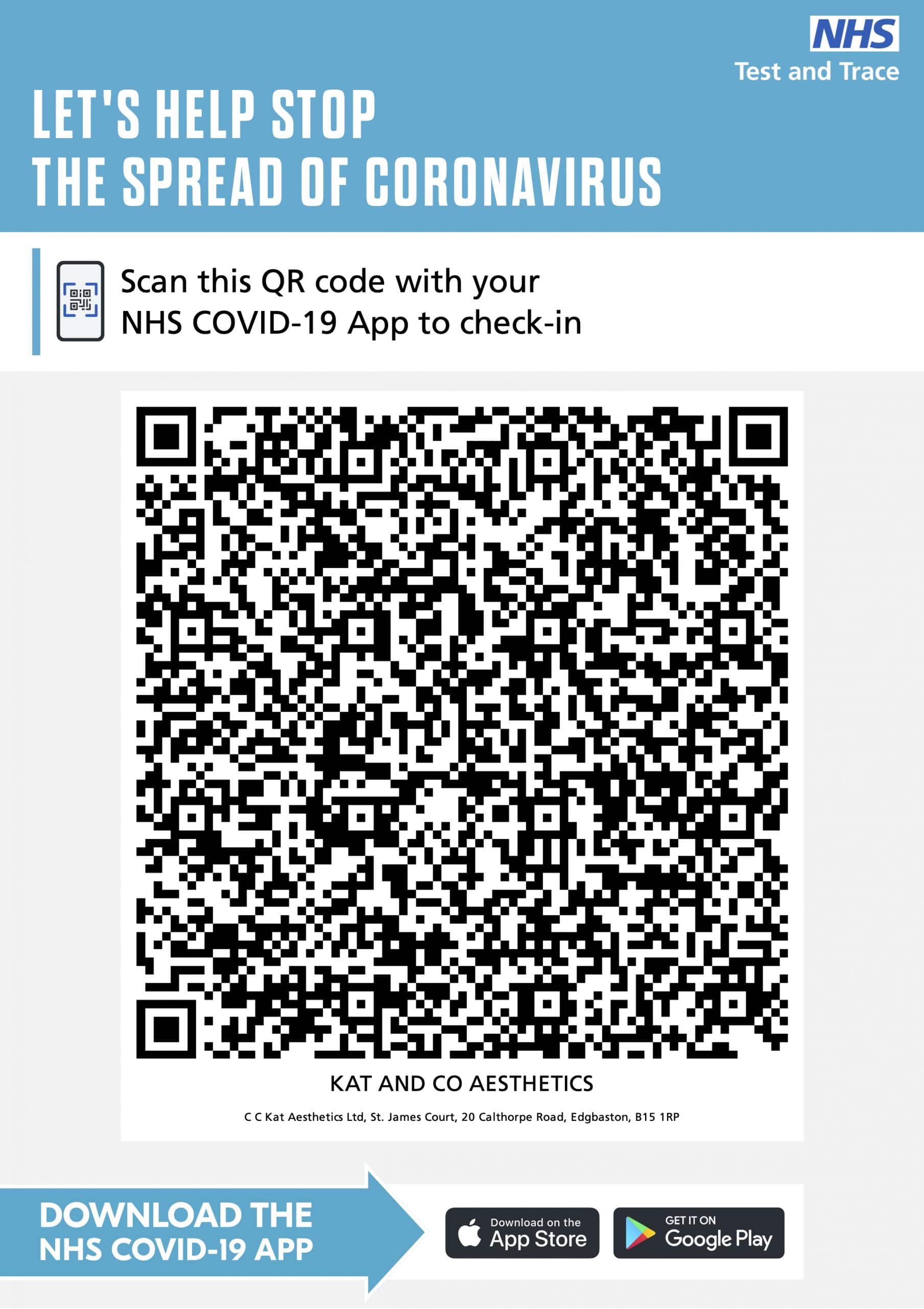 The NHS Covid-19 app has been launched to help stop the spread of Covid-19 and we are advising anyone visiting the clinic to download the app and ensure they scan our QR code on arrival.