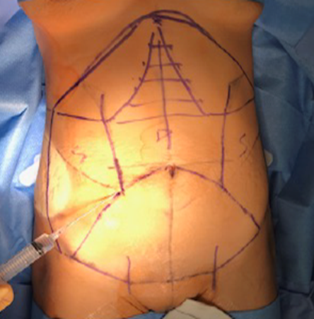 Skin markings for the lock and glue lipoabdominoplasty