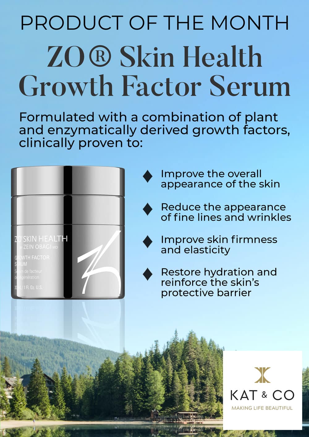 ZO's Growth Factor Serum is a lightweight gel for all skin types that helps minimizes the appearance of expression lines + wrinkles.