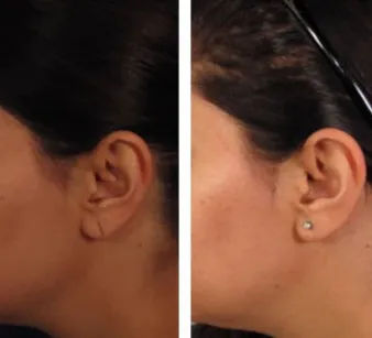 The stitches are dissolvable in the back of the ear and non-dissolvable in the front. The whole procedure takes approximately 20 mins for each side.